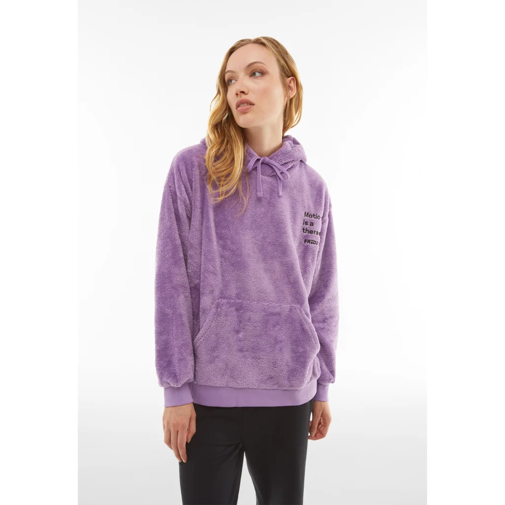 Φούτερ με άνετη εφαρμογή κι απαλό φλις borg, δηλαδή απομίμηση μαλλιού προβάτου με διακοσμητικά στοιχεία που περιλαμβάνουν μία εμπνευσμένη φράση στο σημείο της καρδιάς. Διαθέτει φοδραρισμένη κουκούλα με κορδόνι για να σφίγγει και να προσφέρει καλύτερη εφαρμογή με πλέξη τύπου ζέρσεϊ στο ίδιο χρώμα με το υπόλοιπο ρούχο, πεσμένους ώμους, ύφασμα με ραβδώσεις στο στρίφωμα και τις μανσέτες και μπροστινή τσέπη. Το κεντημένο λογότυπο στην κάτω πλευρά του μανικιού ολοκληρώνει τις στιλιστικές λεπτομέρειες αυτού του καθημερινού ρούχου. Φορέστε το για να φέρει αυθεντικότητα στην γκαρνταρόμπα σας στο όνομα της απόλαυσης, που προσφέρει η ελευθερία κινήσεων, όταν συνδυάζεται με το στυλ.
