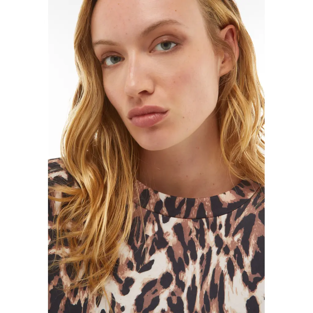 Άνετο φούτερ με λεοπάρ στάμπα σ’ όλη την επιφάνεια. Έχει στρογγυλή λαιμόκοψη, πεσμένους ώμους και στρίφωμα και μανσέτες από το ίδιο ύφασμα, που έχει δημιουργηθεί το ρούχο. Φτιαγμένο από βαμβάκι και πολυεστερικό φλις, πρόκειται για ένα ύφασμα, που είναι ιδιαίτερα απαλό κι έχει φωτεινά χρώματα. Αυτό το φούτερ έχει μοντέρνο πνεύμα, το οποίο θα φέρει αυθεντικότητα στη γκαρνταρόμπα σας στο όνομα της ευχαρίστησης, που προσφέρει ο συνδυασμός ελευθερίας κινήσεων και στυλ.